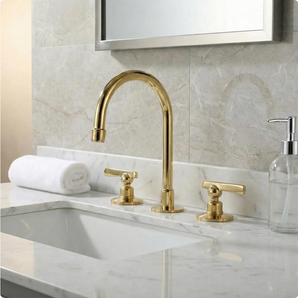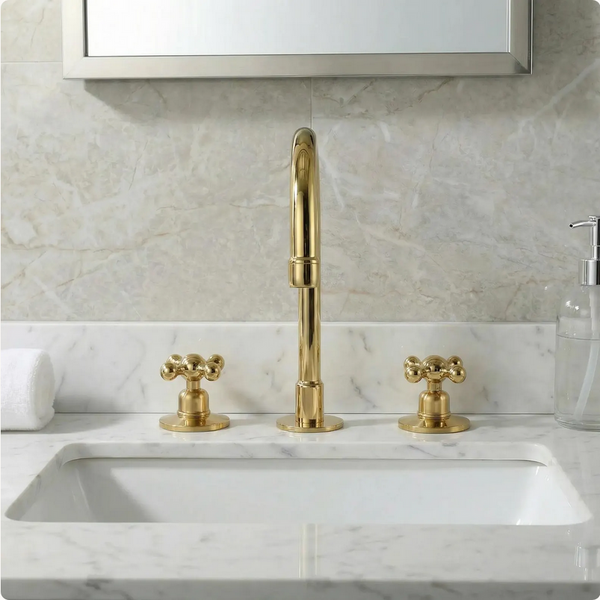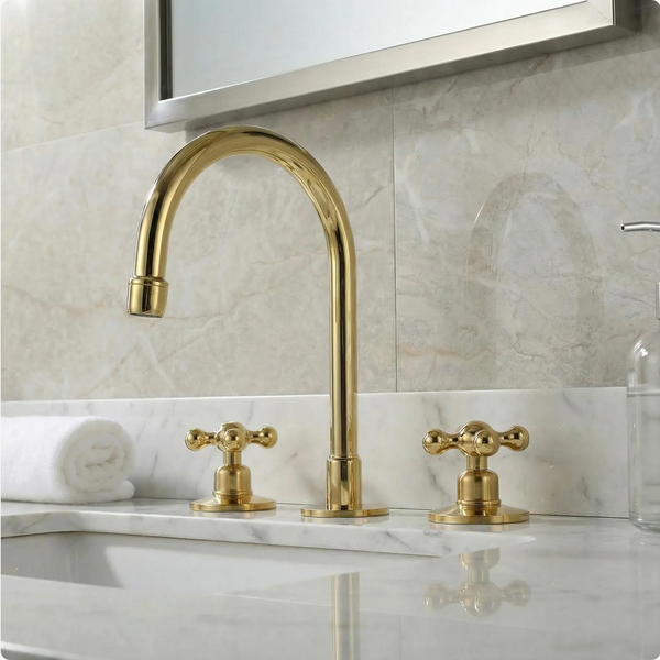 Transform your bathroom with the Vintabrass Widespread Faucet: a handcrafted piece designed for modern luxury.